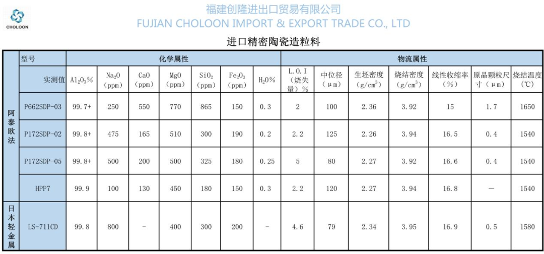 福建創隆擁有長(cháng)達二十多年的專業的業務采銷團隊,現在上海、天津、廣東、泉州等都(dōu)設有大型倉庫,長(cháng)年備有各種(zhǒng)型号、規格齊全的大量現貨,從技術服務到供應保障赢得了先進(jìn)陶瓷産業上下遊客戶的信賴。