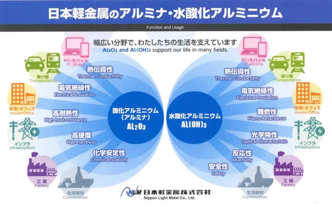 日本輕金屬(Nippon Light Metal)化學(xué)品氧化鋁及氫氧化鋁,具有卓著(zhe)的物理性能(néng),優異的化學(xué)性能(néng),作爲陶瓷耐火和磨料的原料,其産品典型特征種(zhǒng)類清晰,應用方向(xiàng)明确細分: