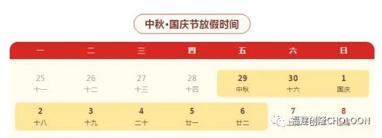 “雙節”將(jiāng)至,福建創隆公司向(xiàng)全體同仁及家屬,關注、關心和支持公司發(fā)展的各界朋友緻以最誠摯節日祝福和衷心的感謝,提前祝您們節日快樂,阖家幸福!